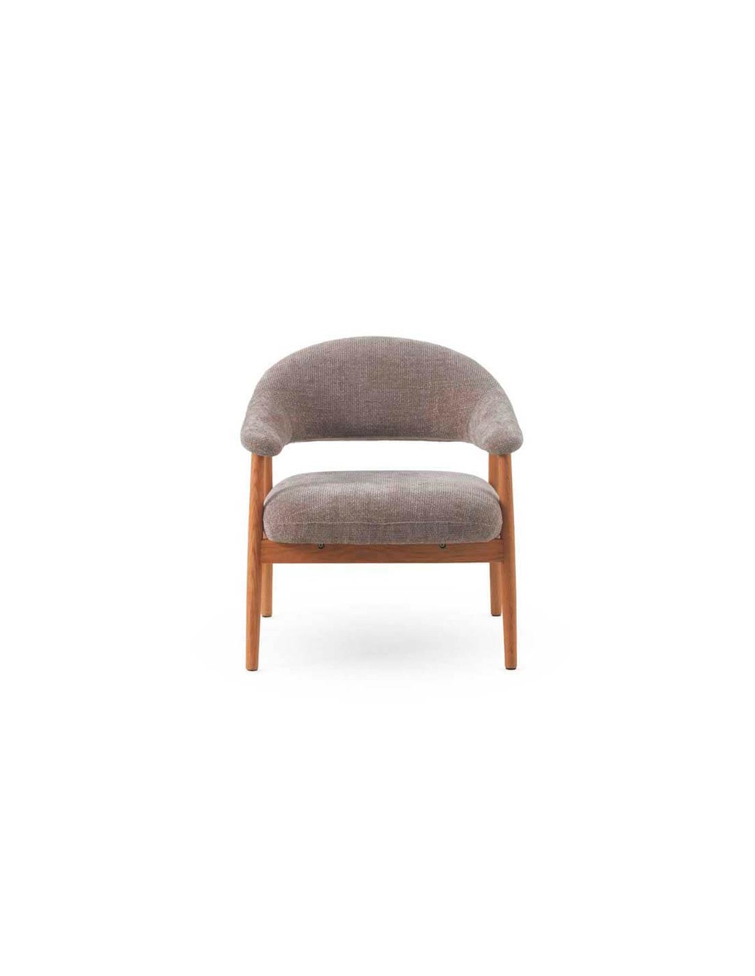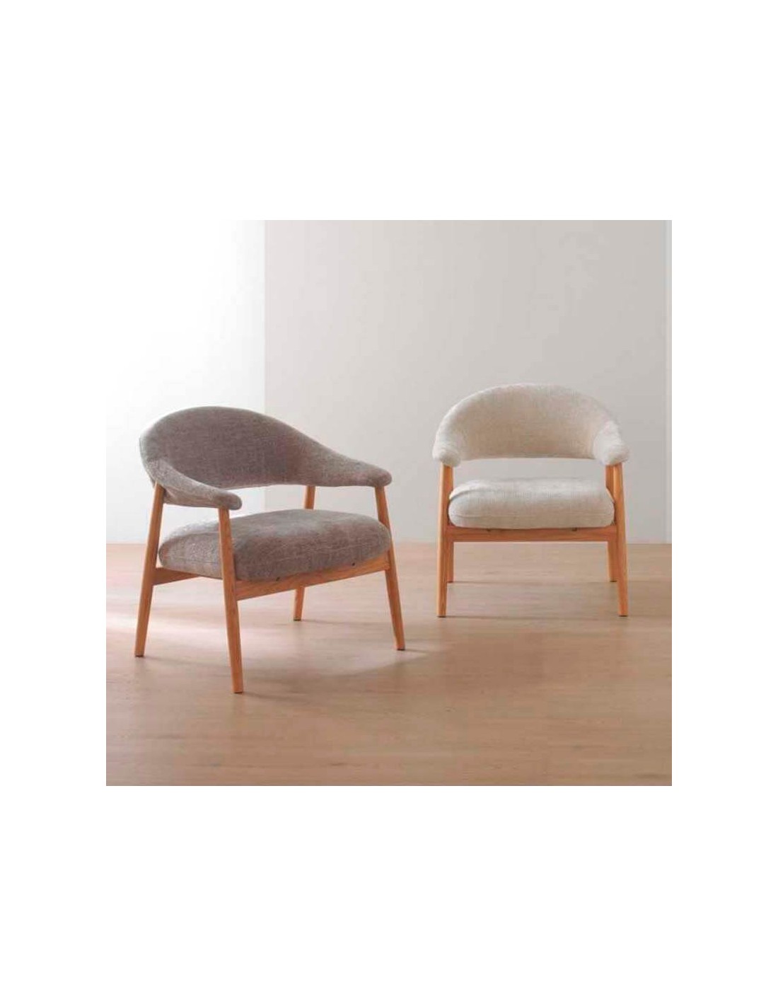 Butaca nórdica de respaldo bajo. Tapizado en chenilla blanca o marrón.