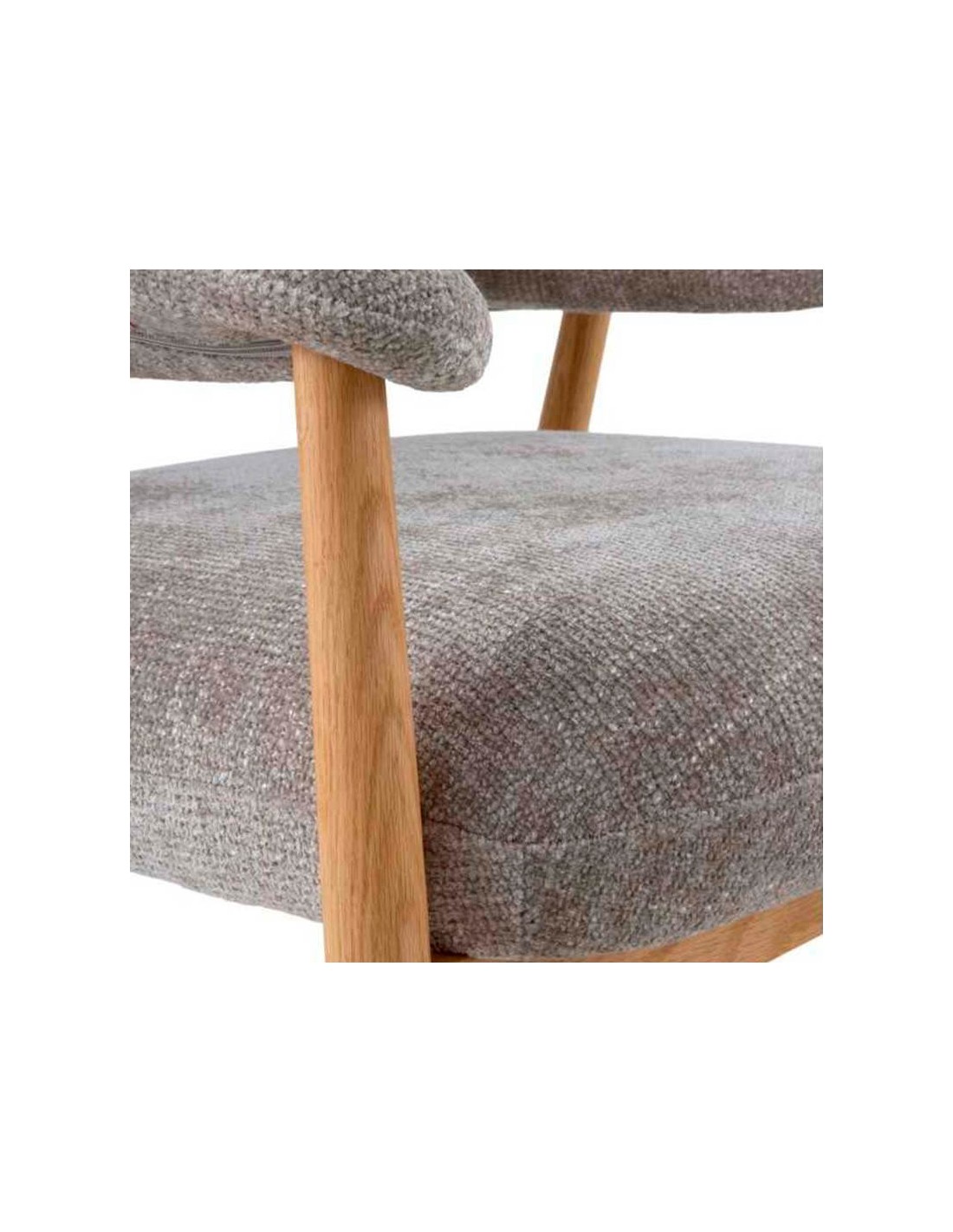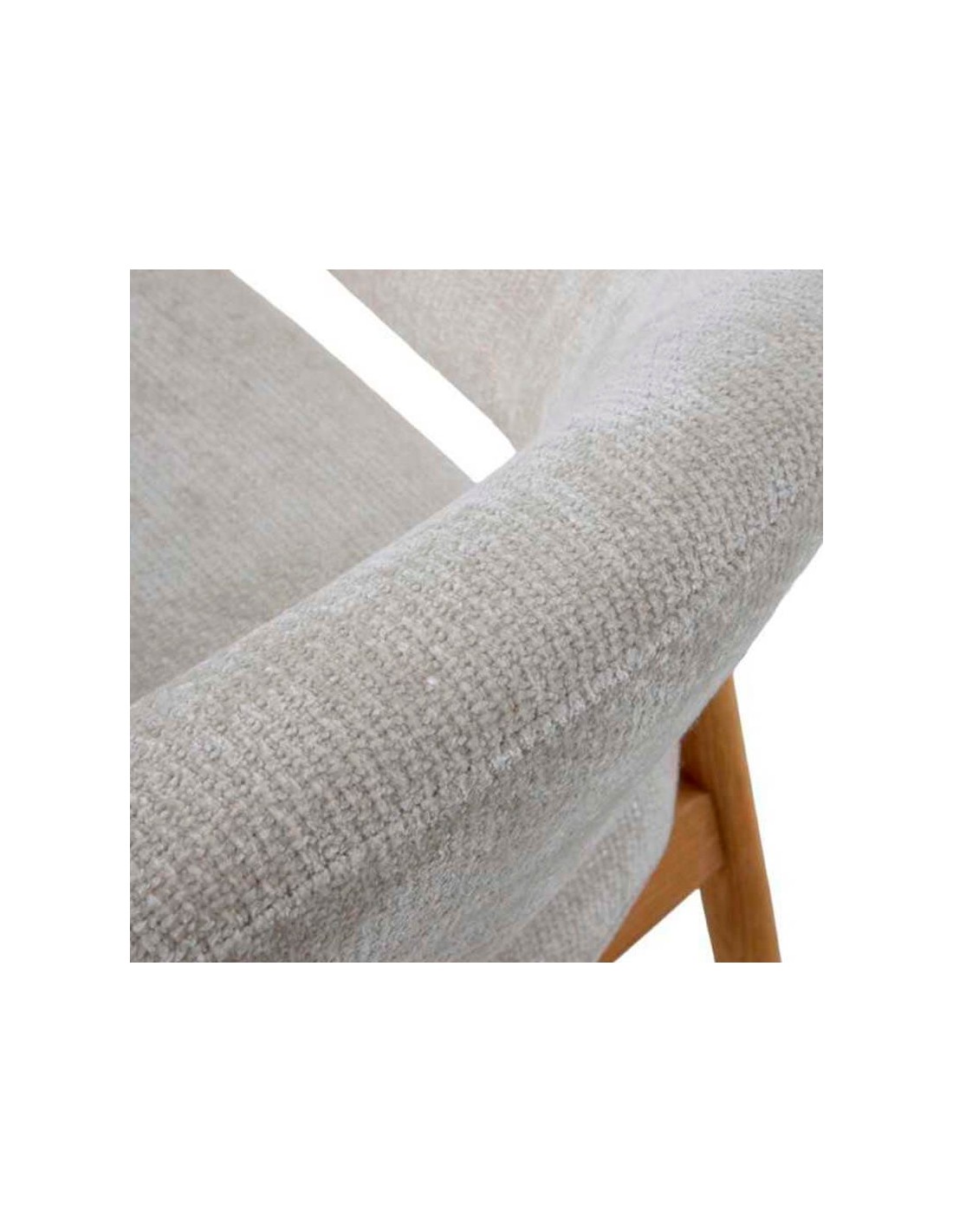 Butaca nórdica fácil de combinar con cualquier otro estilo decorativo. Para dormitorio, salón, recibidor o sala de espera. Fabricada en madera de roble en color natural y asiento y respaldo tapizados. Tejido chenilla suave disponible en color blanco o marrón.