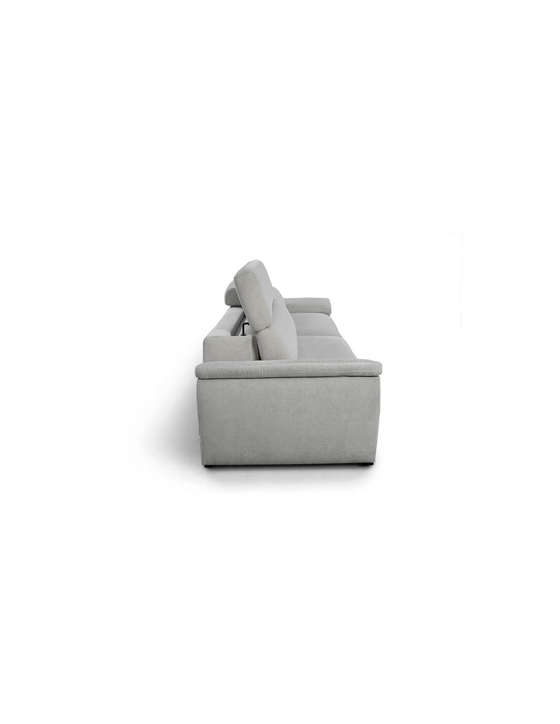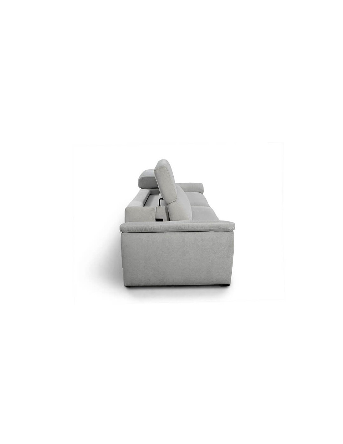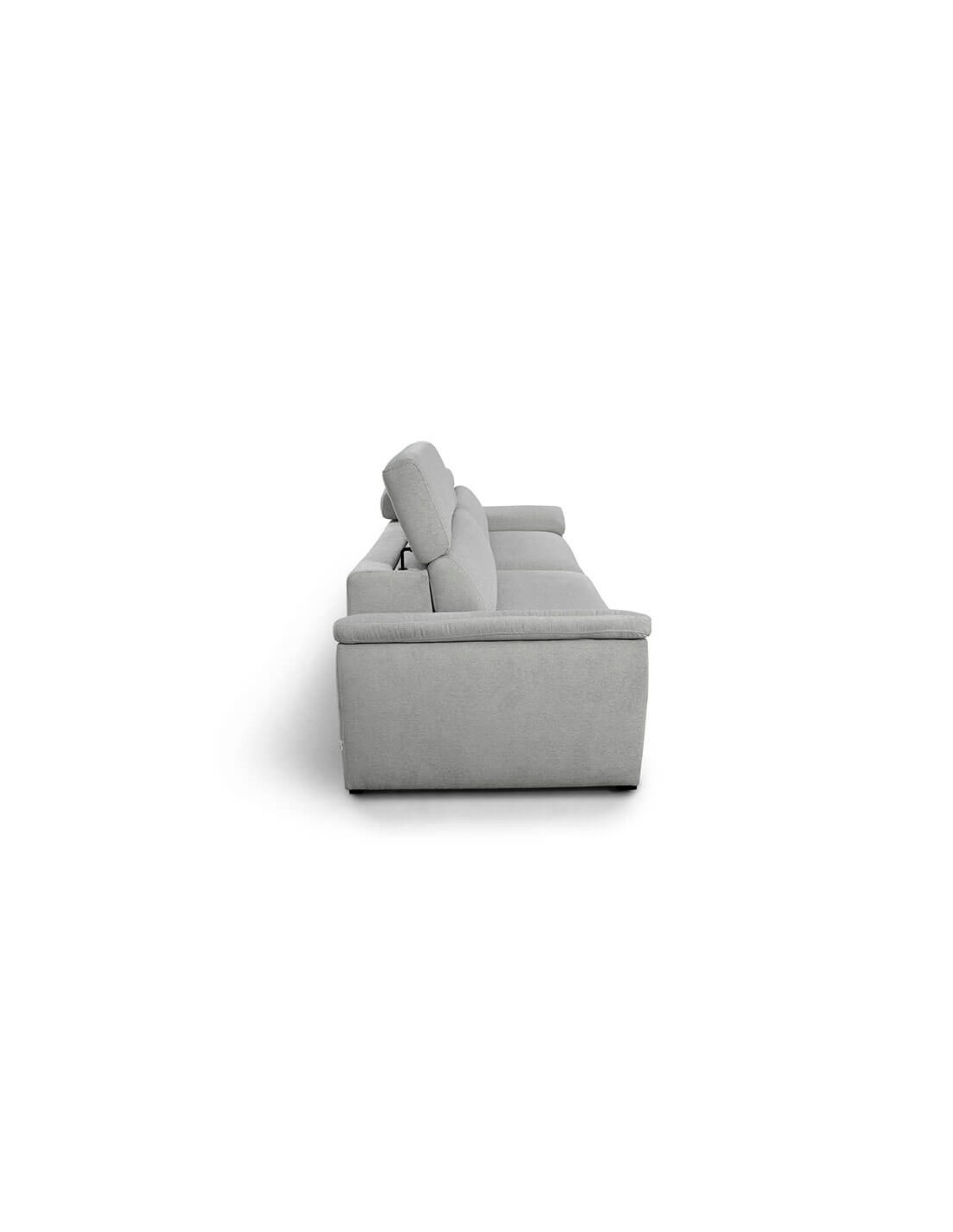 Sofá de diseño actual provisto de las máximas prestaciones de confort. Fabricado en madera de pino de primera calidad, con asientos de espuma de poliuretano de 35 kg + capa de 2,5 cm de súper suave con bombeo + capa de 5 cm viscoelástica; respaldos y brazos de espuma de poliuretano de 25 kg extra suave. Los asientos (excepto la chaiselongue) incluyen carro deslizante de larga prolongación con suspensión con muelle zz, pudiendo adecuar la sentada al gusto de cada uno. Los respaldos disponen de un novedoso mecanismo Adapt System, por el cual podremos adelantar su posición un máximo de 16 cm; cabezales reclinables con mecanismo italiano.