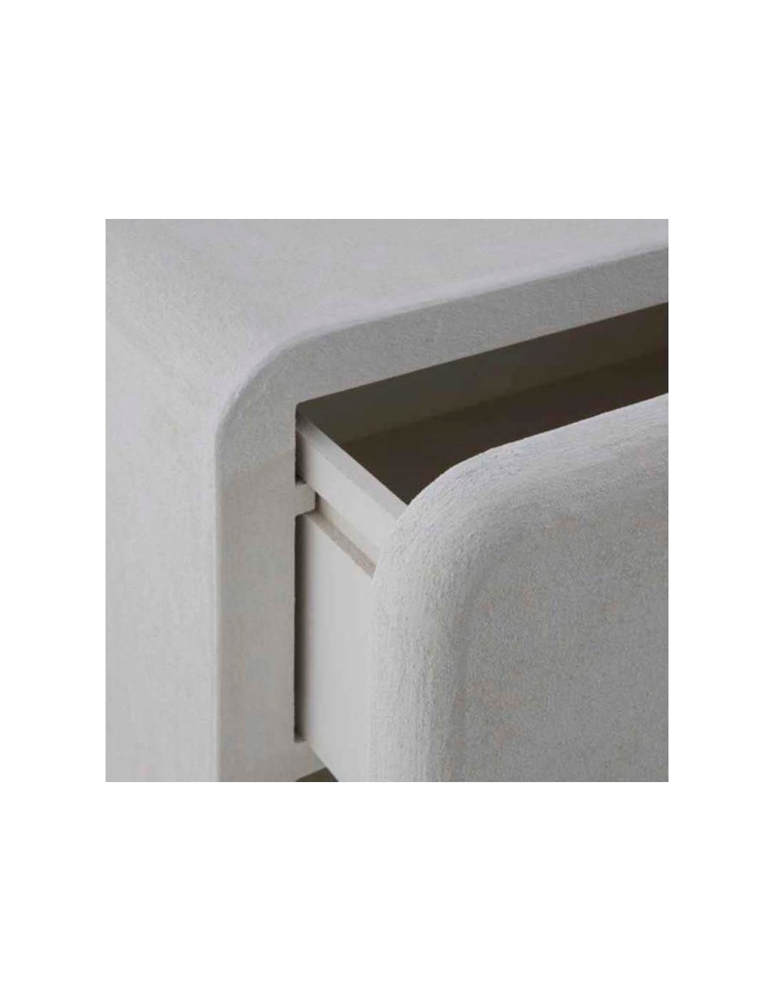Mesita de noche con cajón. Cemento blanco. Para dormitorios contemporáneos.