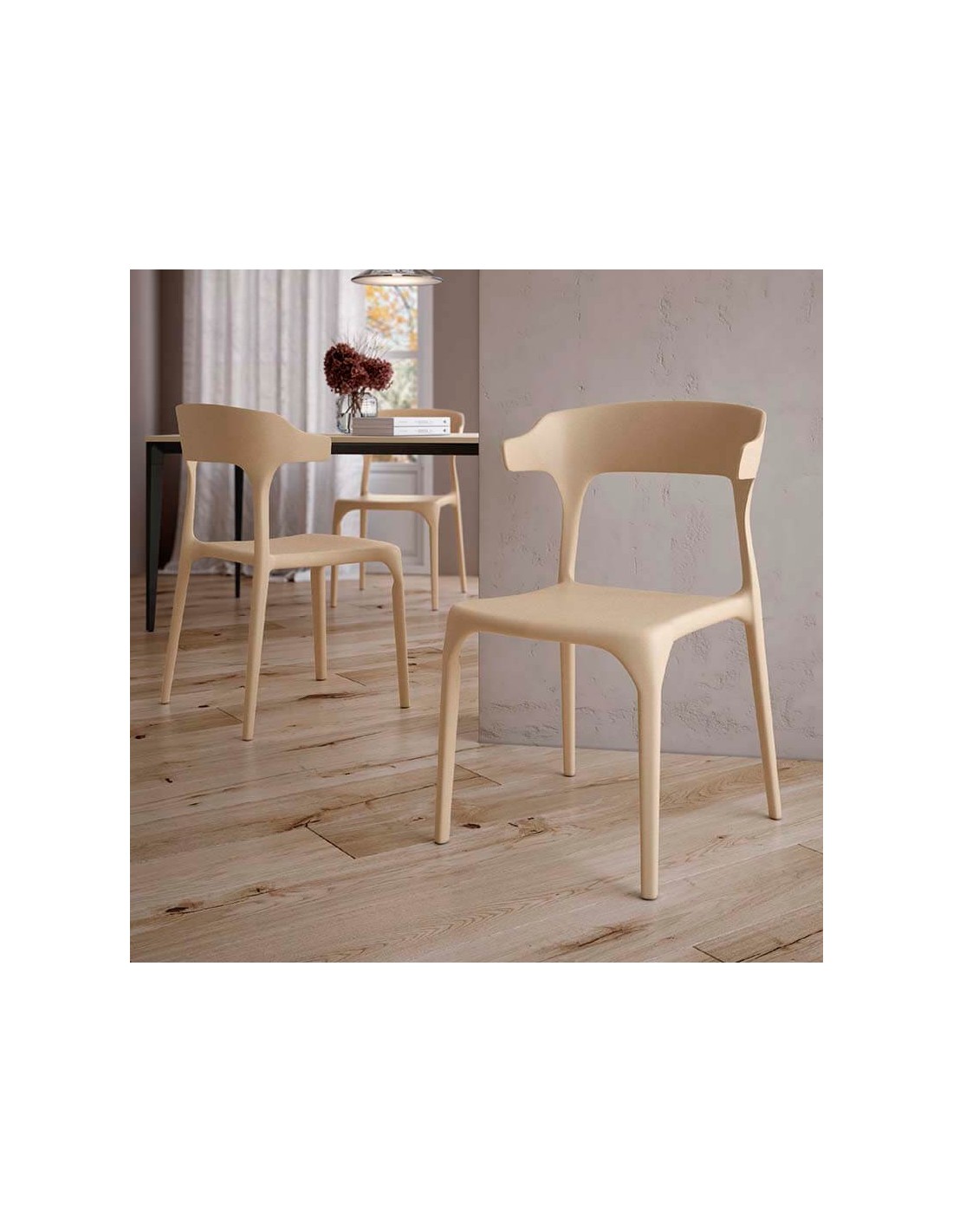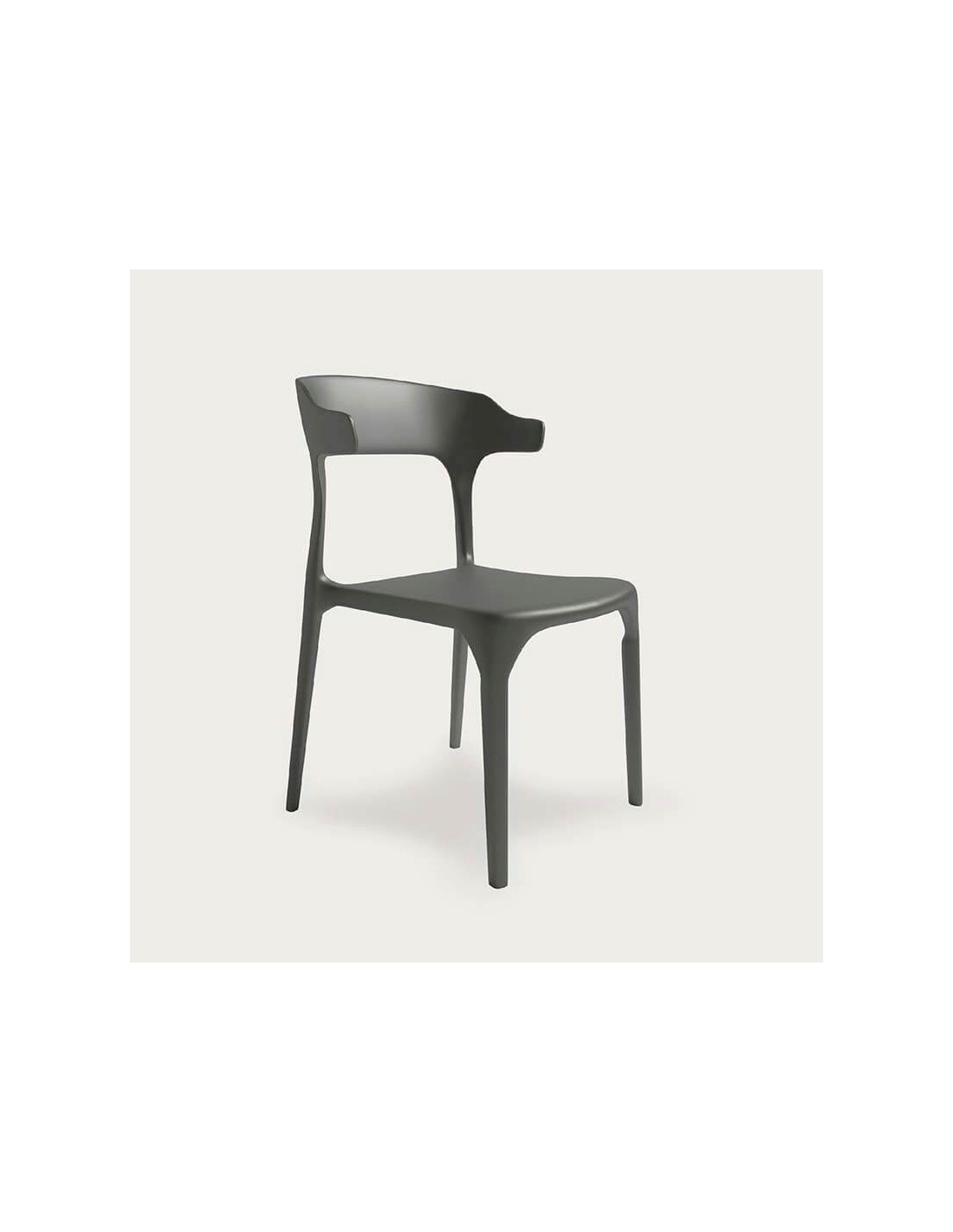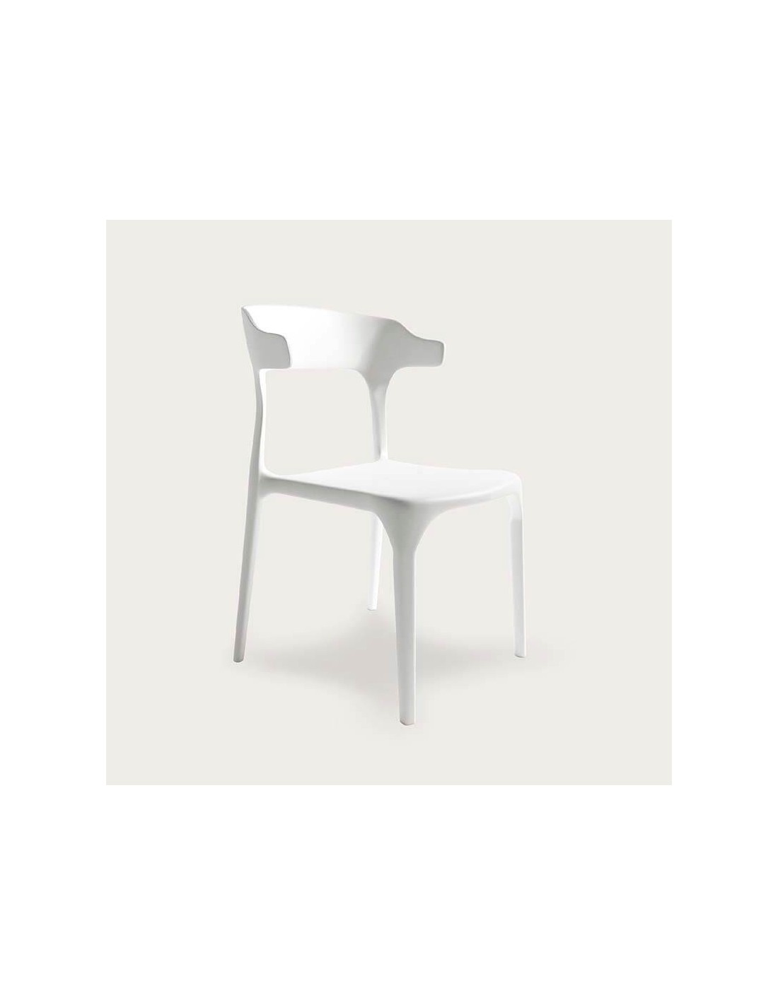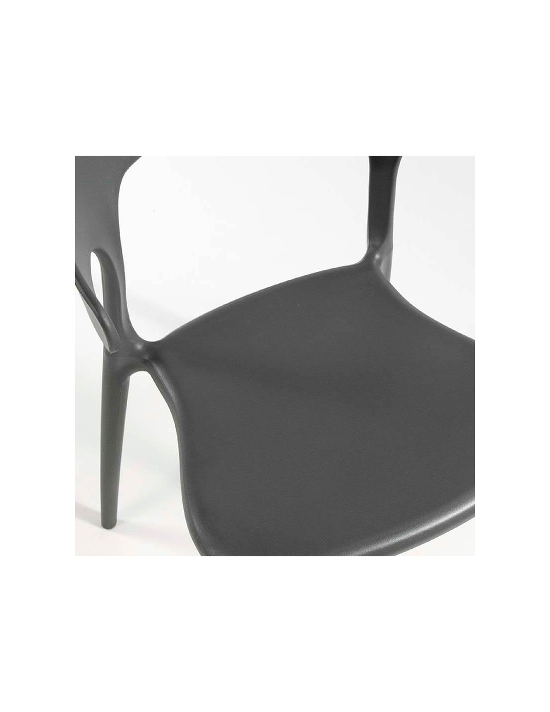Silla apilable de polipropileno apta para uso en interiores y exteriores. Disponible en tres colores: arena, grafito o blanco. Pack de 4 unidades