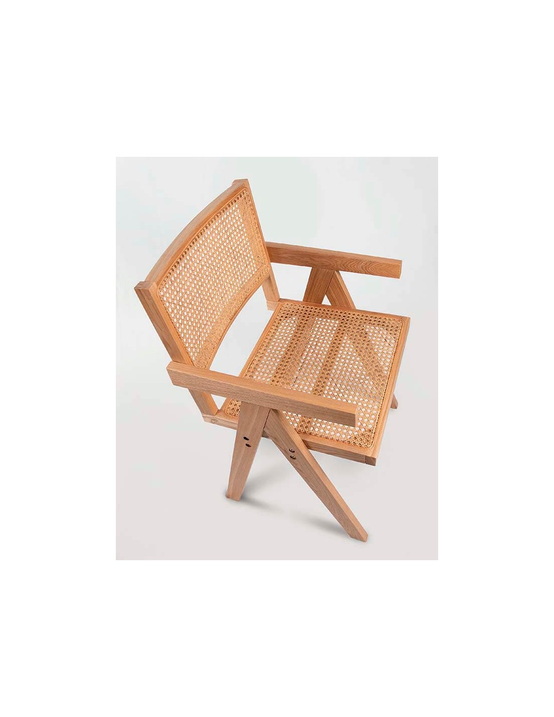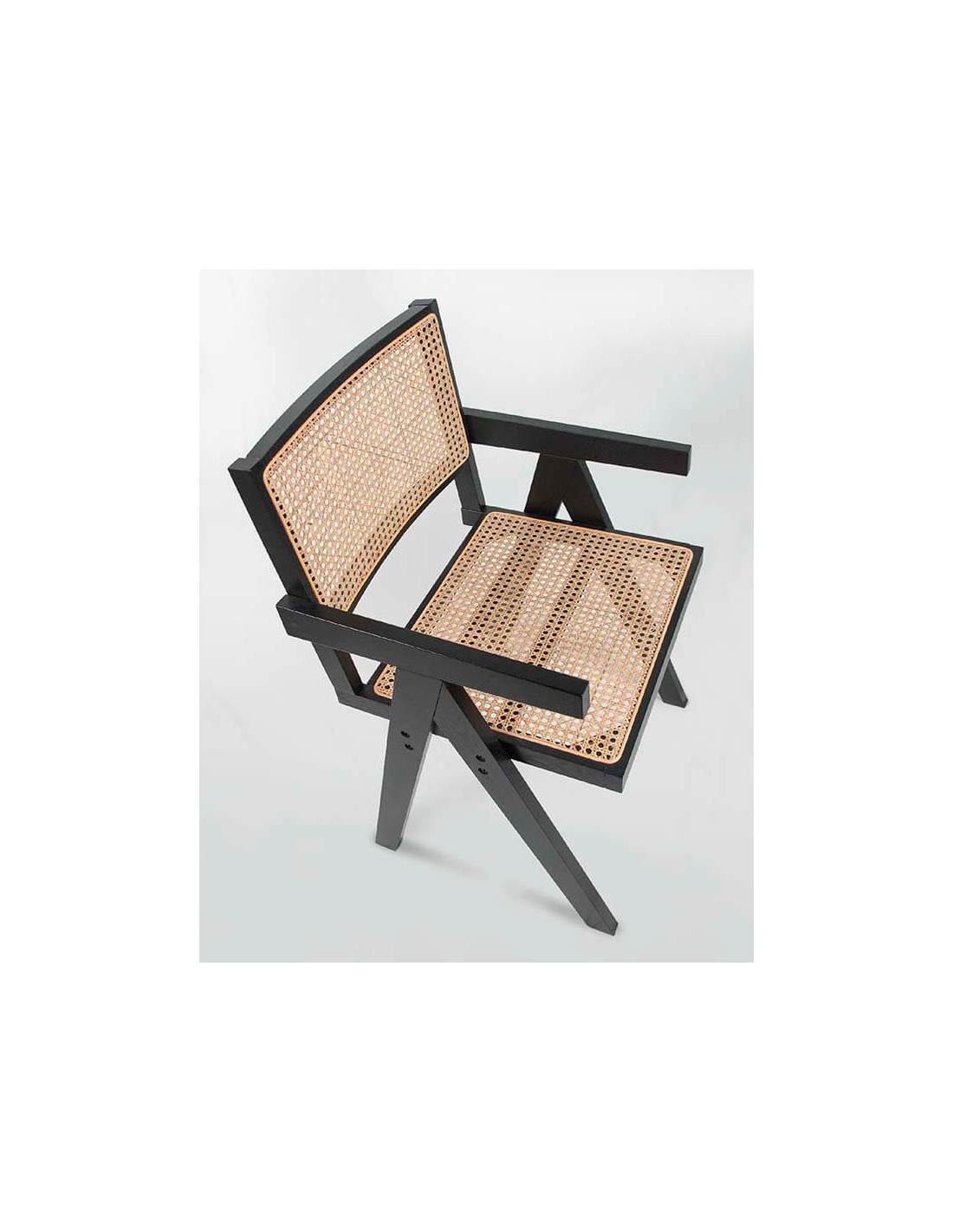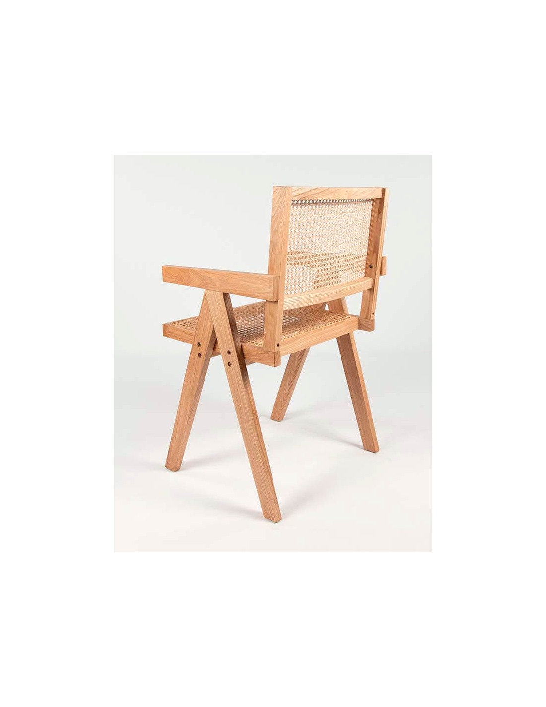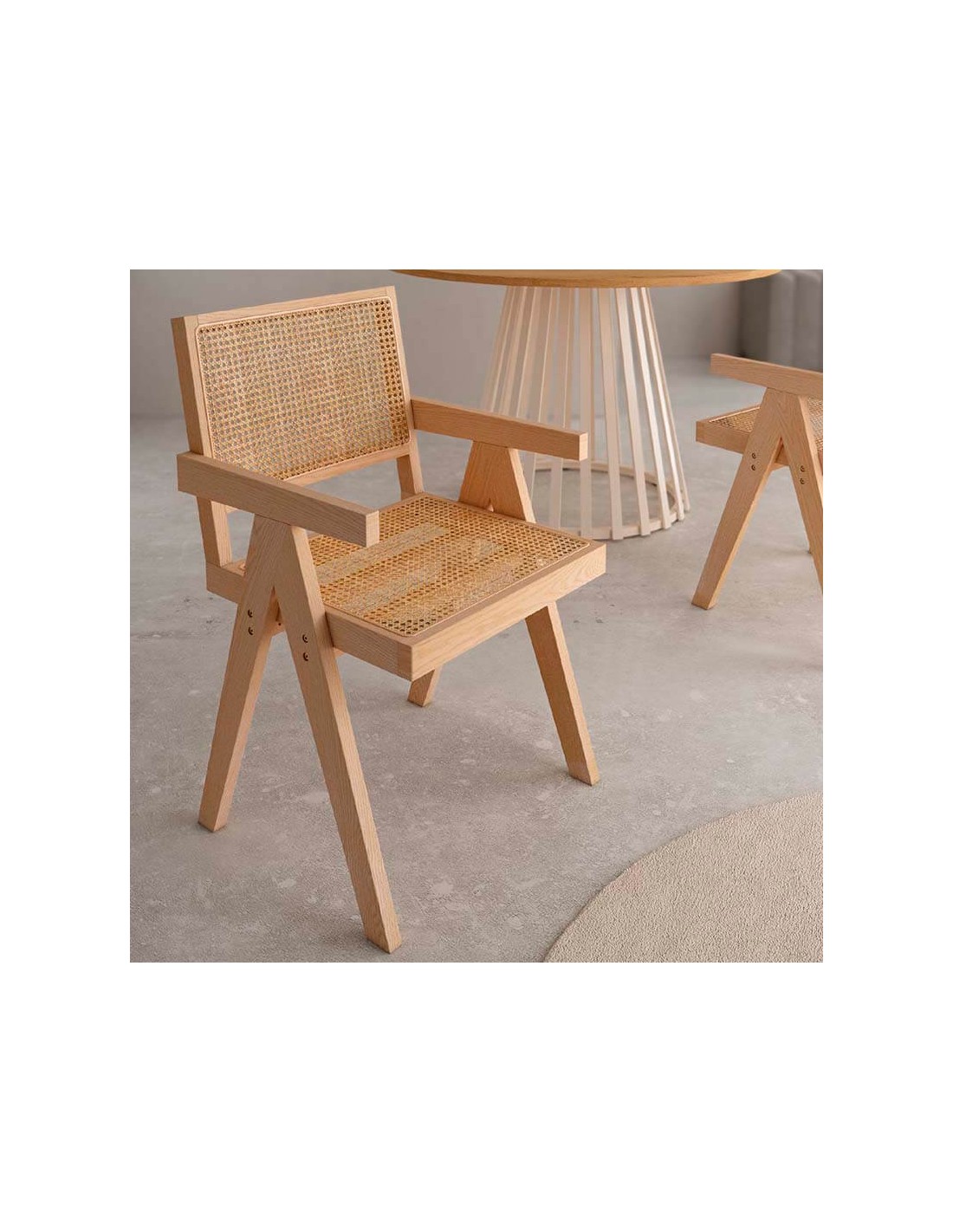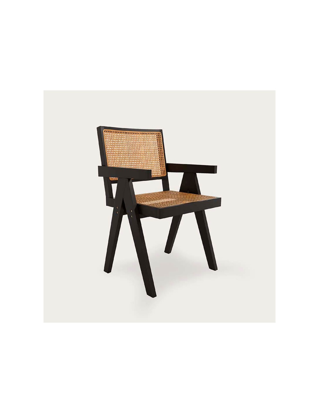 Silla con brazos de madera y rejilla. En color negro o roble. Pack 2 unidades.