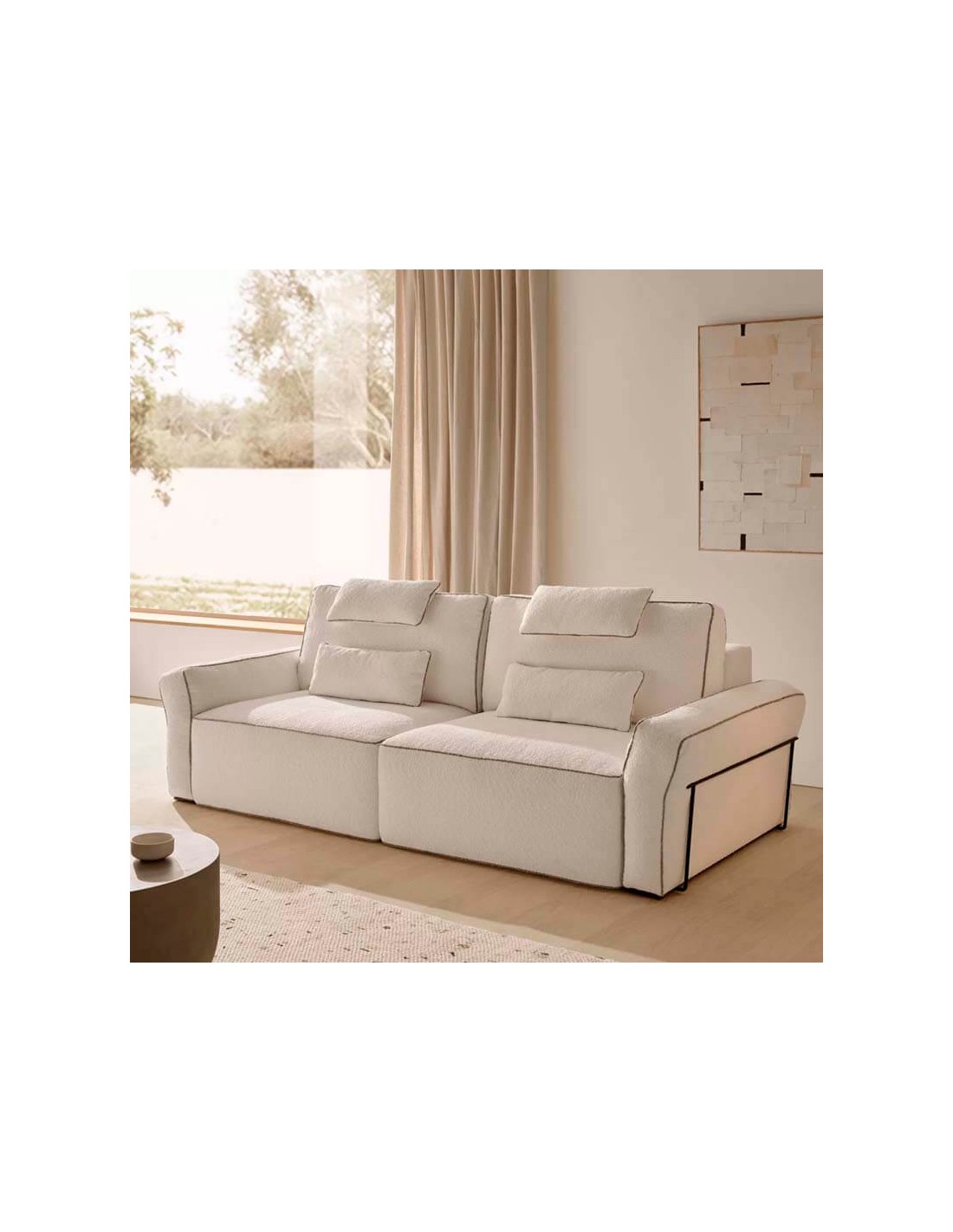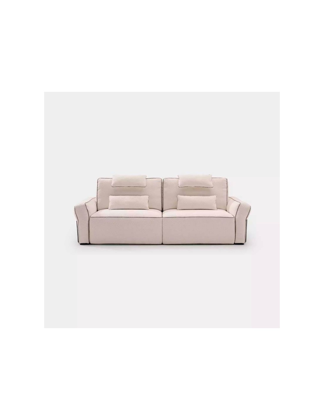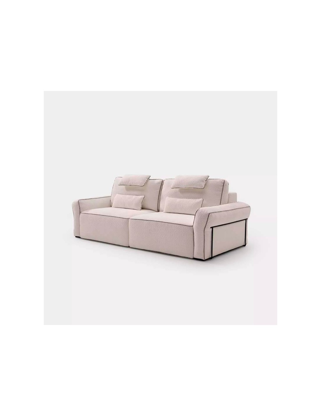 Sofá de diseño contemporáneo con máximas prestaciones y confort. Con asientos de carro deslizante plus y arcón incluido, podrás adaptar la posición de cada módulo con movimientos suaves; el brazo ofrece un soporte ergonómico y envolvente, de elegante diseño está envuelto en una estructura metálica en fora de "U" invertida que añade firmeza y estabilidad. Cada uno de los respaldos reclinables incluye un cabecero y una riñonera para ofrecer un extra de confort.